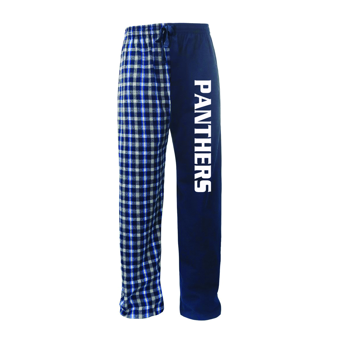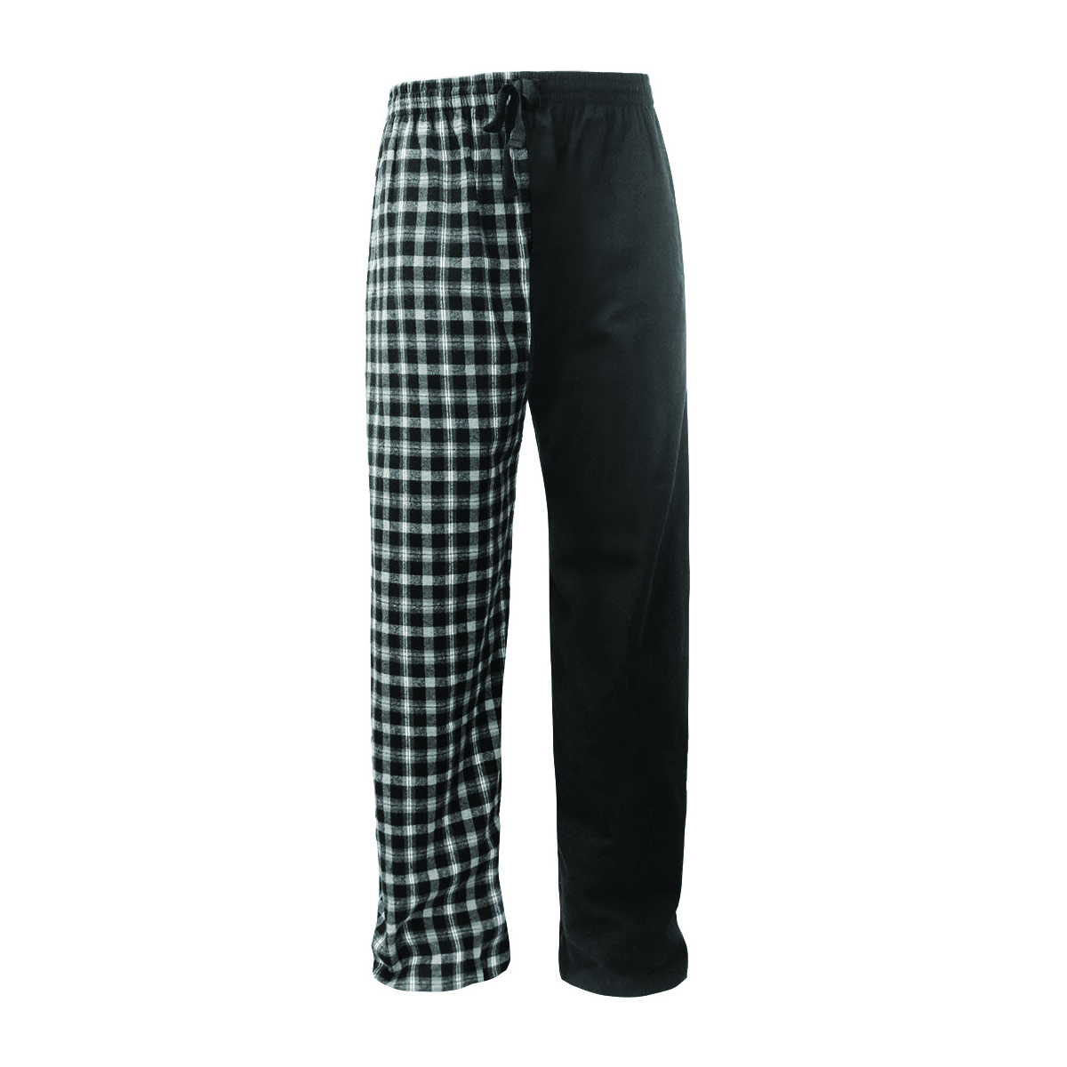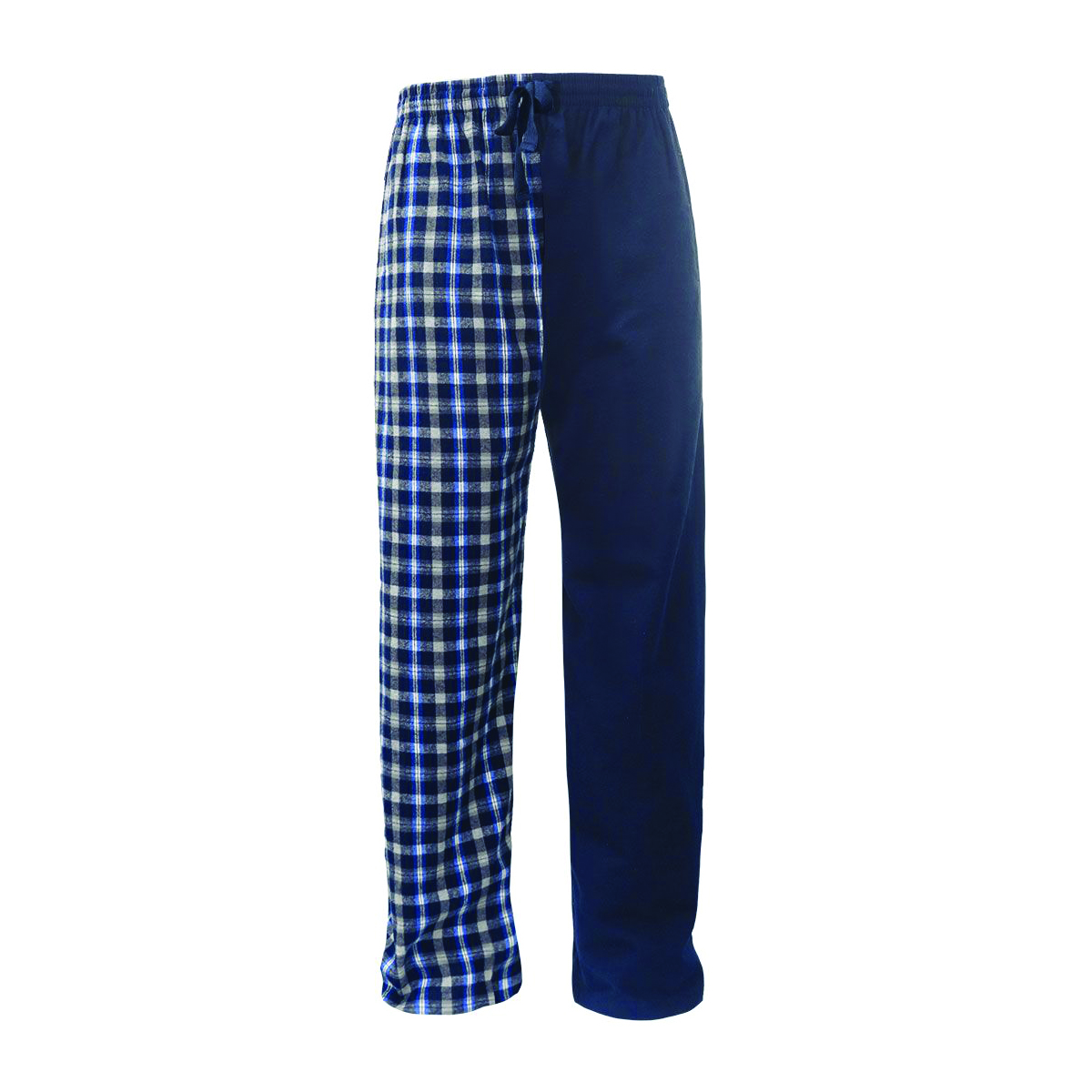 solid flannel left leg / plaid flannel right leg